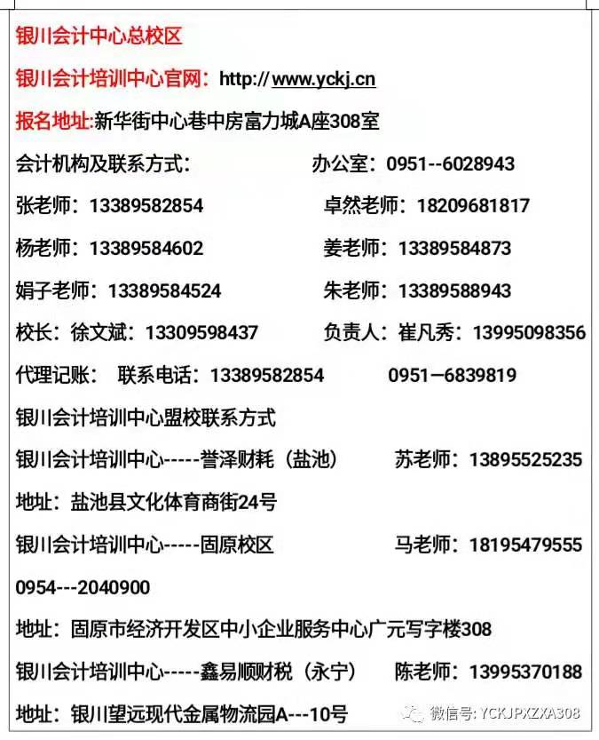 銀川會(huì)計(jì)培訓(xùn)中心(新華街中心巷中房富力城A座308)